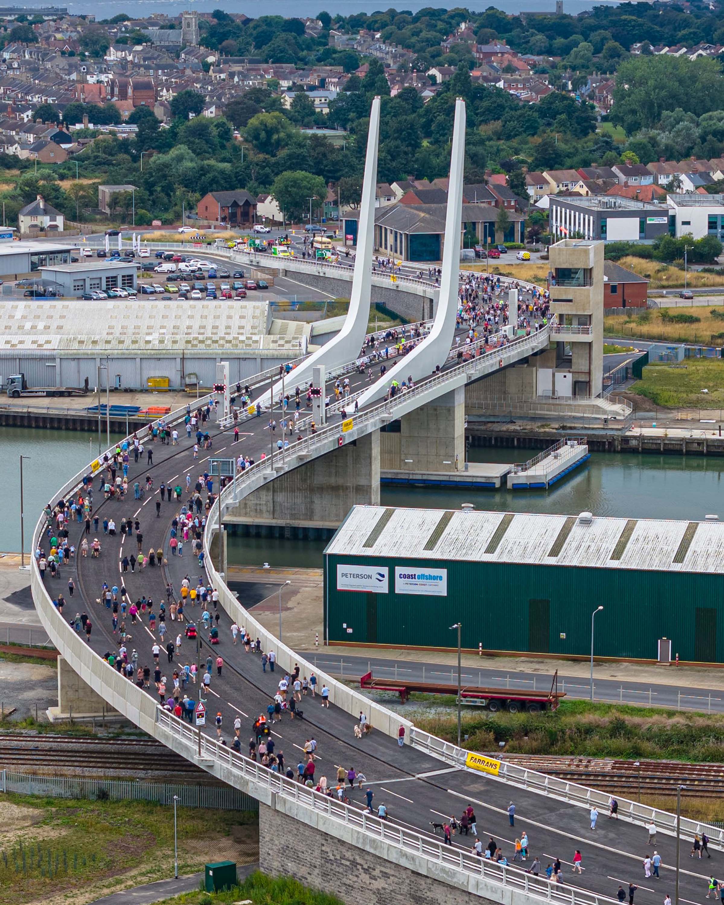 Dans la catégorie des ponts pour piétons et cyclistes, la Passerelle d'Arquennes (Seneffe) a été primée. Le jury a été particulièrement séduit par la légèreté et la transparence particulières de ce projet filigrane et audacieux du Bureau Greisch, parfaitement exécuté par Techno Metal Industrie.