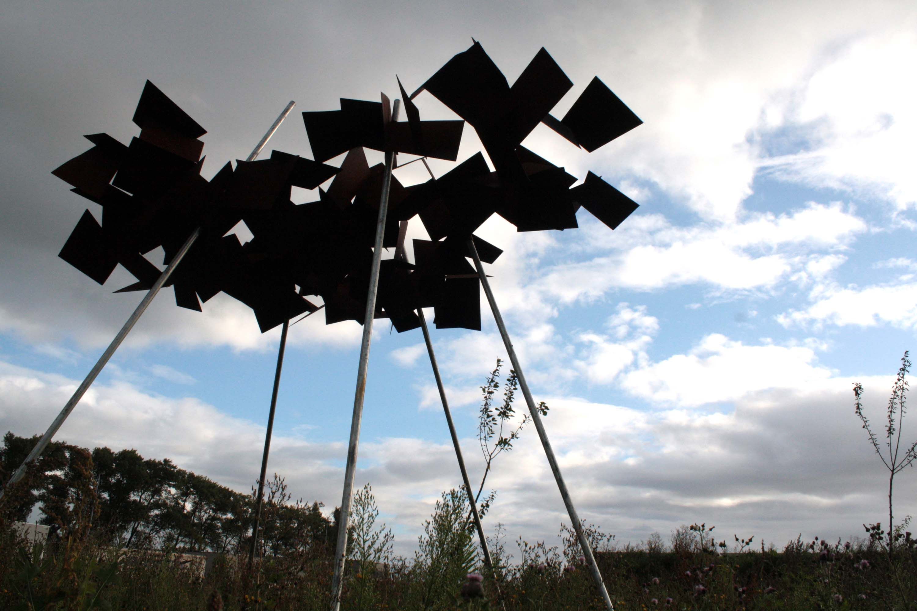 Langs de Klavertjevier-fietsroute in Lo-Reninge staan deze zomer een aantal kunstwerken opgesteld. Eén daarvan is de gelukswolk van IZR alias Maarten Schaubroeck: een collage van scherven in Cortenstaal, die 'zweeft' op enkele slanke ronde buizen van gegalvaniseerd staal. De constructie is opgebouwd uit willekeurige veelhoeken, die uit de staalplaat gehaald zijn door middel van lasercutting, en is met halfautomaat laswerk aan elkaar bevestigd. De willekeurige vormen verwijzen naar de diversiteit binnen de gemeenschap en vormen samen toch één geheel. De fijne, zilverkleurige poten gaan op in de omgeving, zodat de wolk werkelijk lijkt voorbij te waaien. De stalen scherven verwijzen naar het spreekwoord “scherven brengen geluk” en geven zo hun naam aan het kunstwerk.
