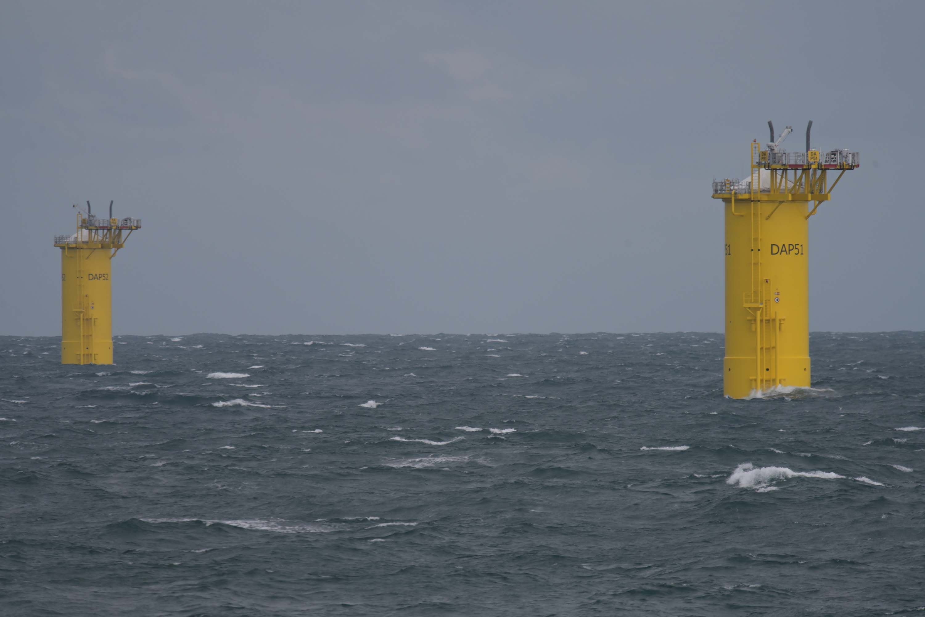 Drie drijvende fundaties voor het Provence Grand Large floating offshore windpark