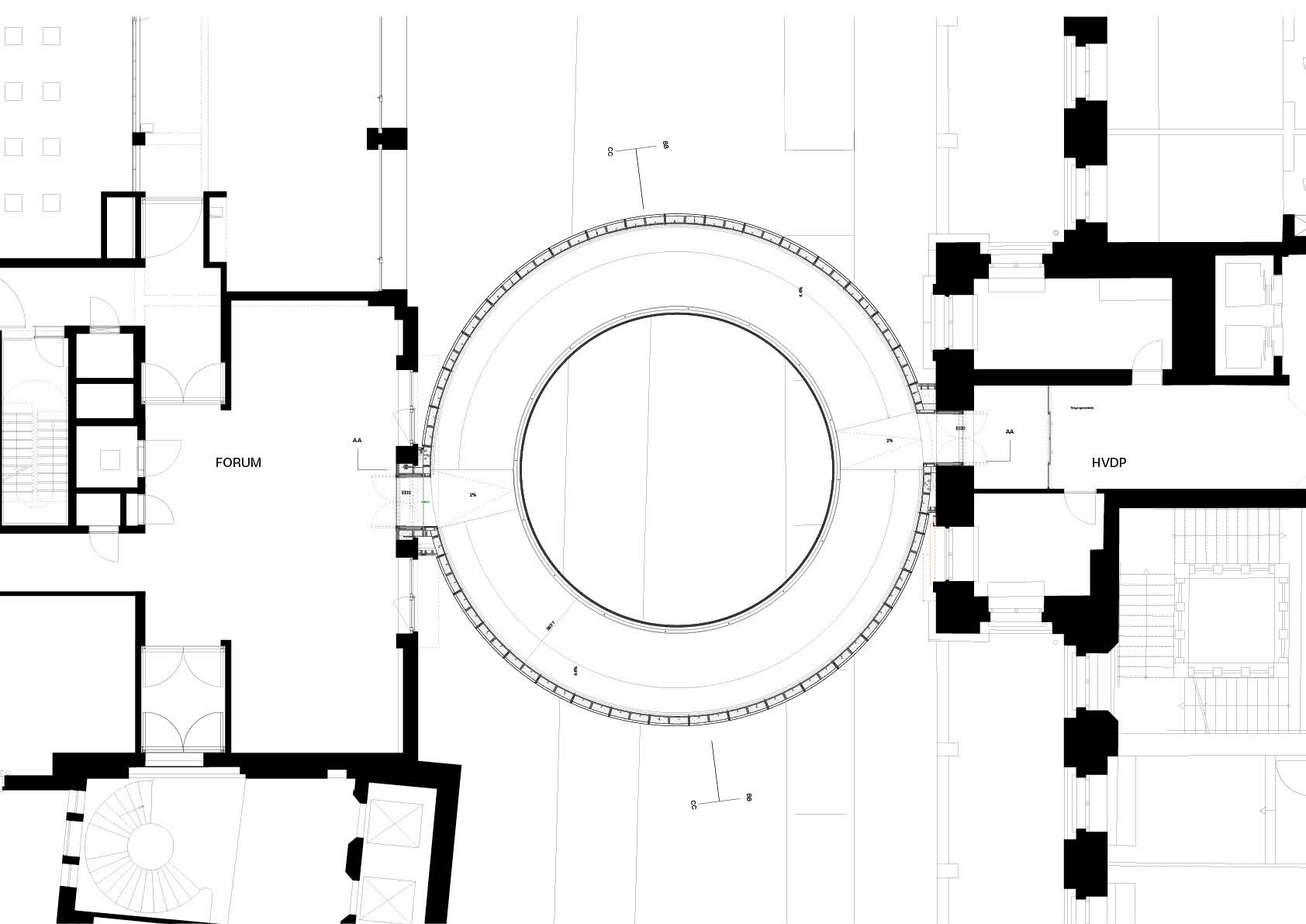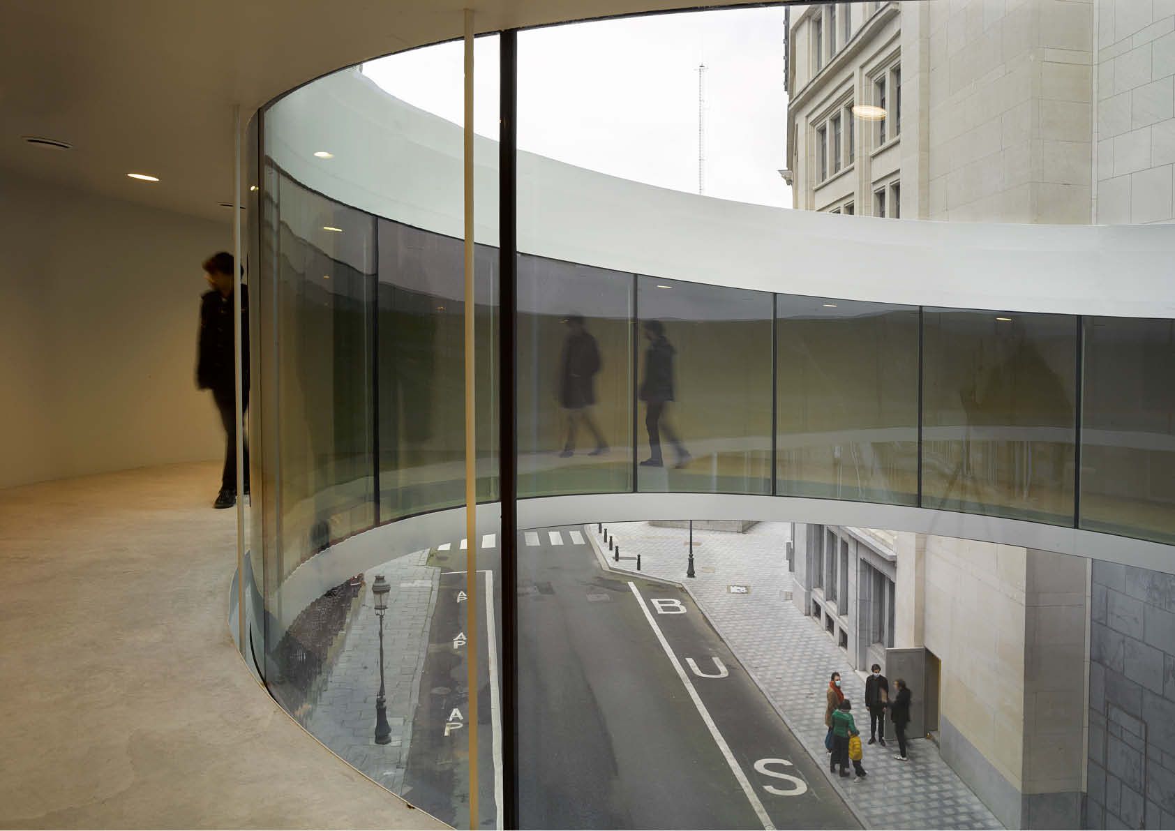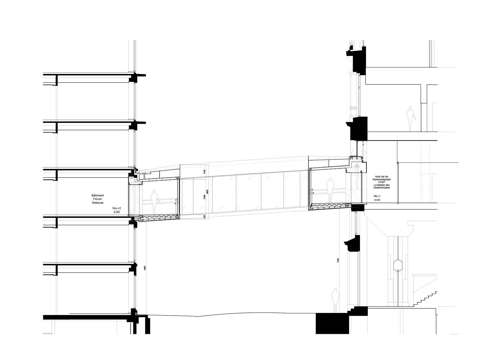 Federale parlementsleden die zich moeten verplaatsen tussen het historische Huis van de Parlementsleden in Brussel en het Forumgebouw, het nieuwe vergadercomplex aan de overkant van de straat, hoeven dat voortaan niet meer in openlucht te doen. Sinds kort kunnen ze de oversteek maken via een fraaie ringvormige passerelle met spiegelgevels. De licht hellende brug kreeg de naam ‘Tondo’, naar de ronde schilderijtjes die erg populair waren tijdens de Renaissance.