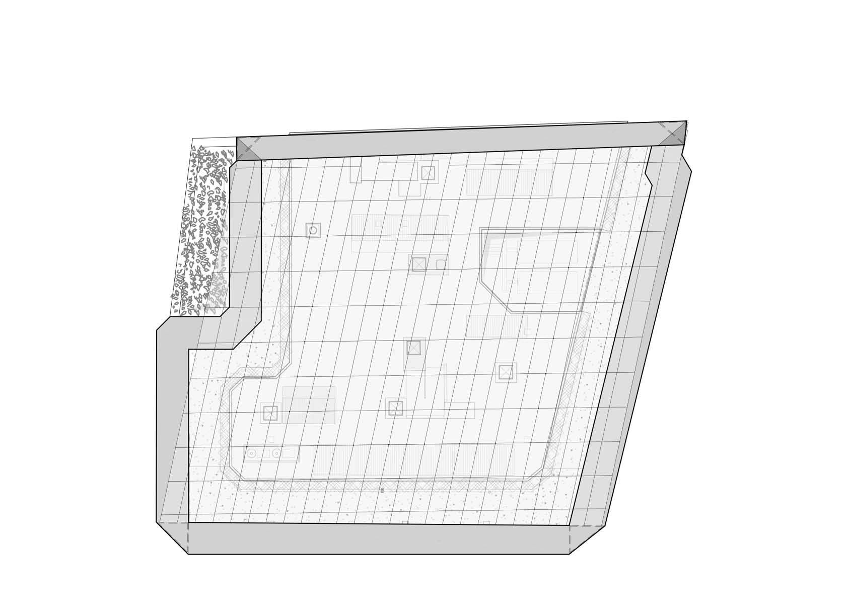 De stalen structuur wordt gevormd door twee portieken die zowel de gevel aan het Rogierplein als de zuidgevel verhogen. Ze zijn opgebouwd uit een stalen koker met een driehoekige sectie en waaraan het glazen dak met zonnepanelen opgehangen is. De luifel, die bijna volledig samengesteld is uit plaatstaal, werd na een proefmontage bij de staalconstructeur in tien stukken op het dak gehesen en vervolgens ter plaatse gelast. De structuur van zo’n 30 x 30 meter weegt 180 ton. De glazen zonnepanelen zorgen voor transparantie en visuele lichtheid van de luifel.